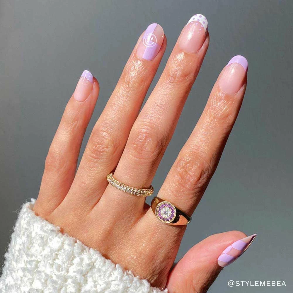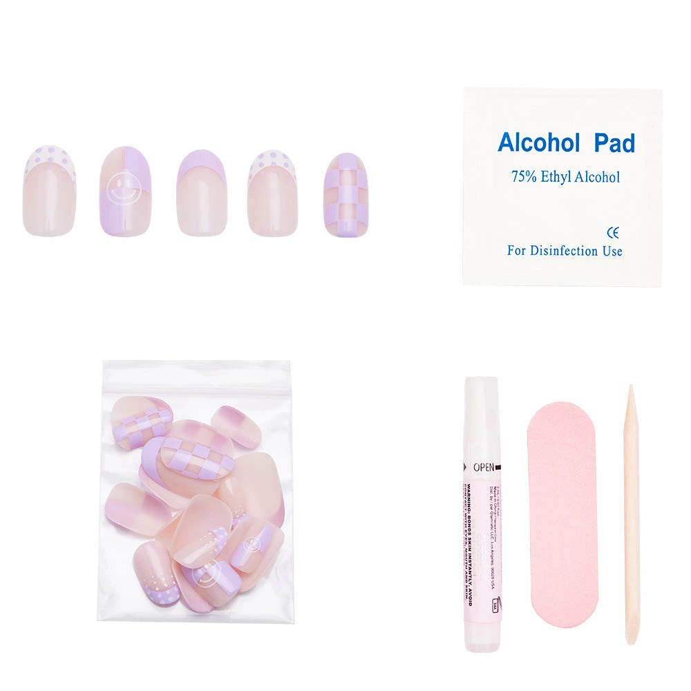 Get ready for your quickie getaway with the Day Trip Nail Set! This look is the perfect blend of trendy, yet versatile, with varied checkered and minimalist dot designs in a swoon-worthy lavender hue, so you can show off your style game from your head to your fingertips! Plus, our most popular short-round shape gives you the perfect “everyday vibes” that you can easily dress up or down.