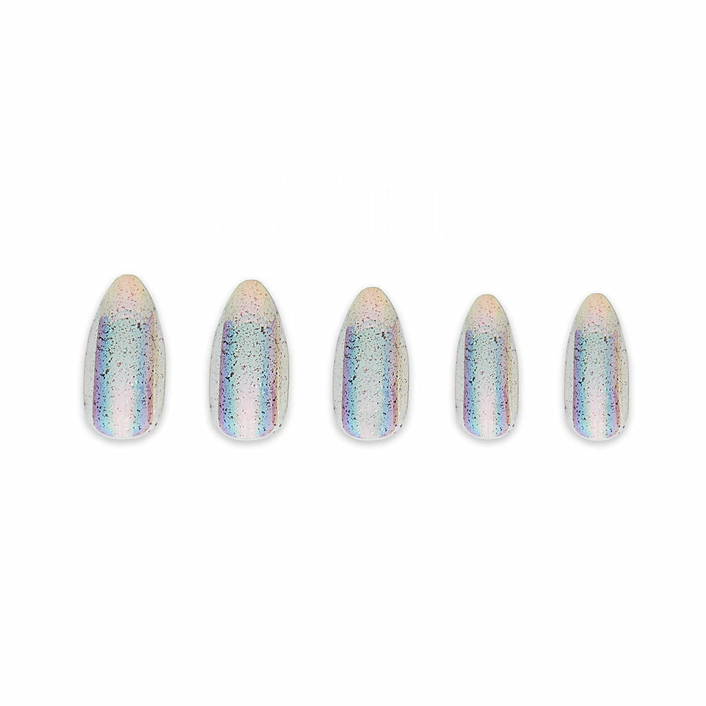 Feel like a SUPERNOVA in these nails! With its beautiful, clear holographic finish, Stardust makes for the ideal subdued glam look. It’s a medium pointed almond nail with embedded glitter for a smooth finish. They feel buttery soft and its semi-transparent look is very natural, perfect for daytime events and weddings!